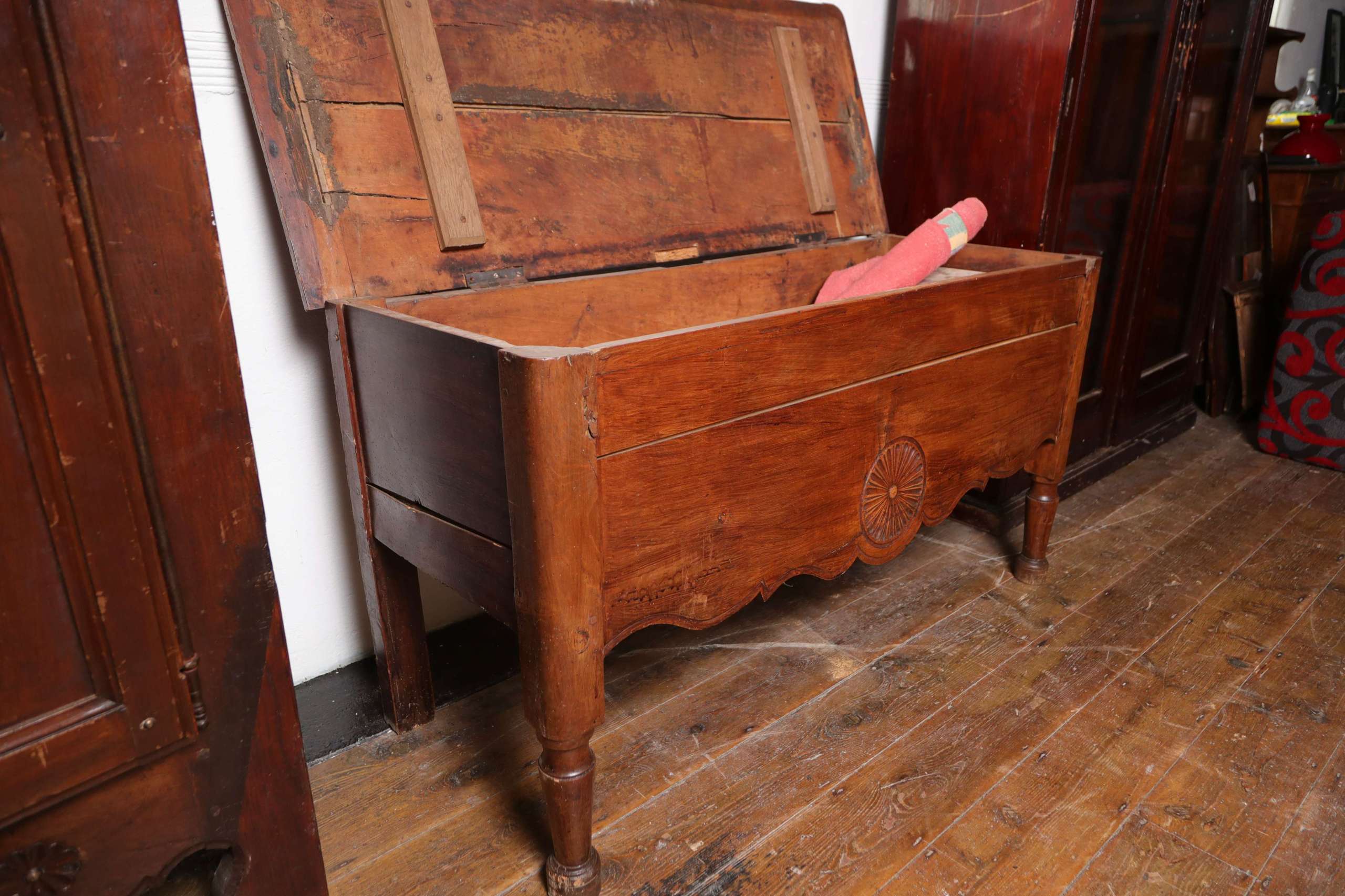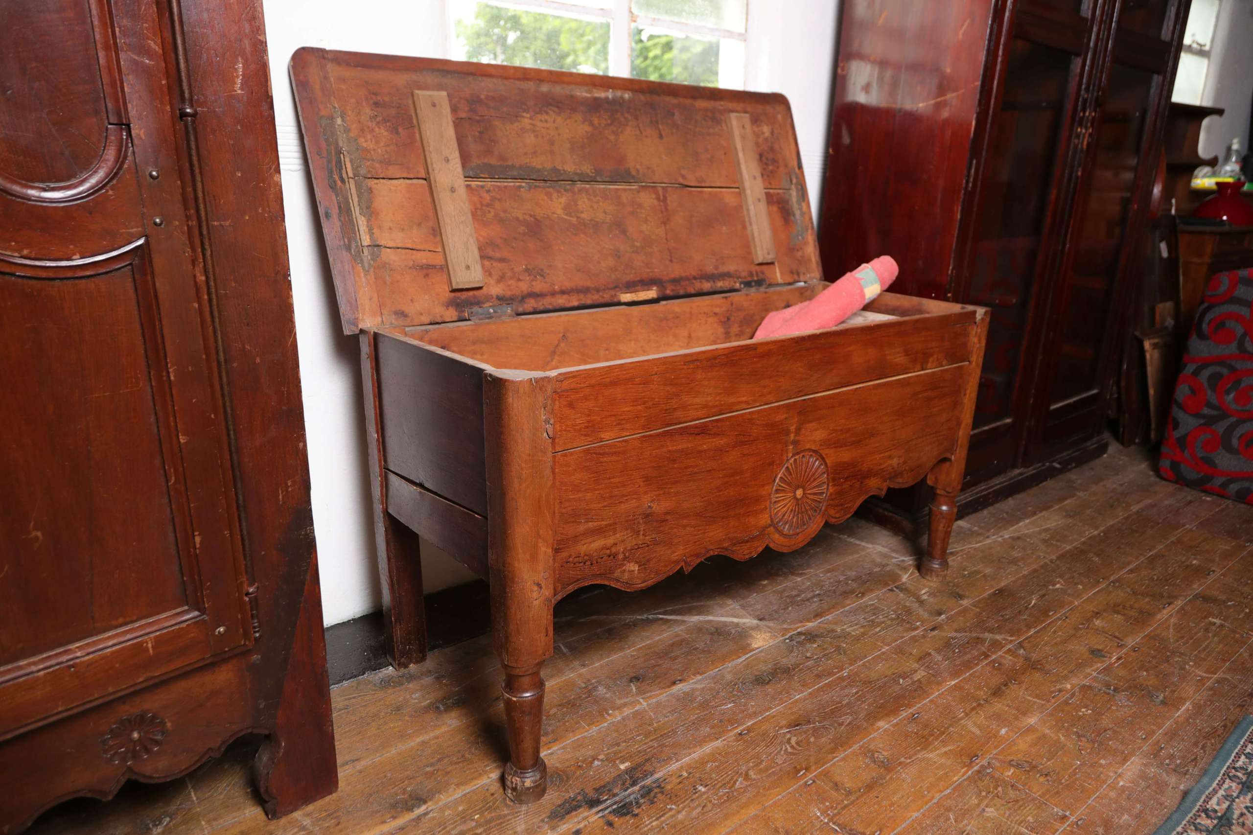 Home / French Antiques / Antique Chest of Drawers & Boxes / Dowry / Blanket Chest Dowry / Blanket Chest Rustic Louis XV provincial influence—seen in the curved skirt and carved detailing. Late 18th to early 19th century. Categories: Antique Chest of Drawers & Boxes, French Antiques Product ID: 1299