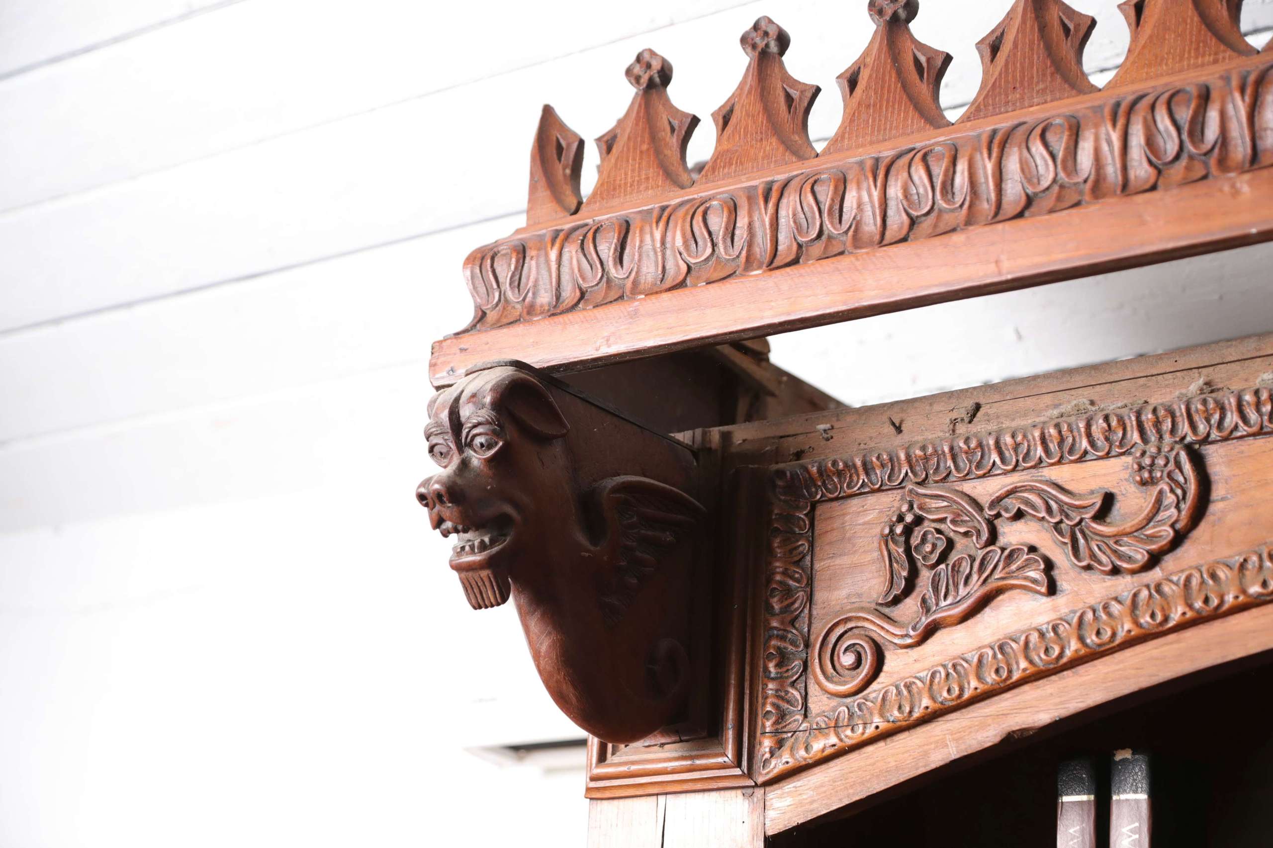 Victorian Gothic Revival Carved Bookcase Cabinet