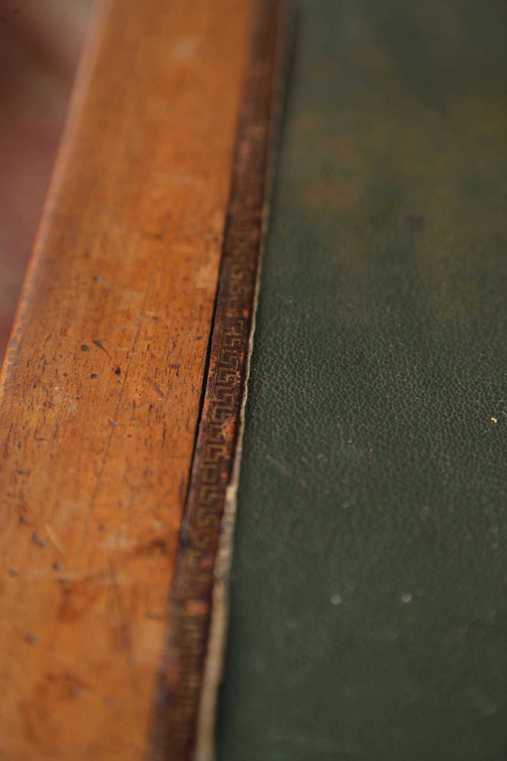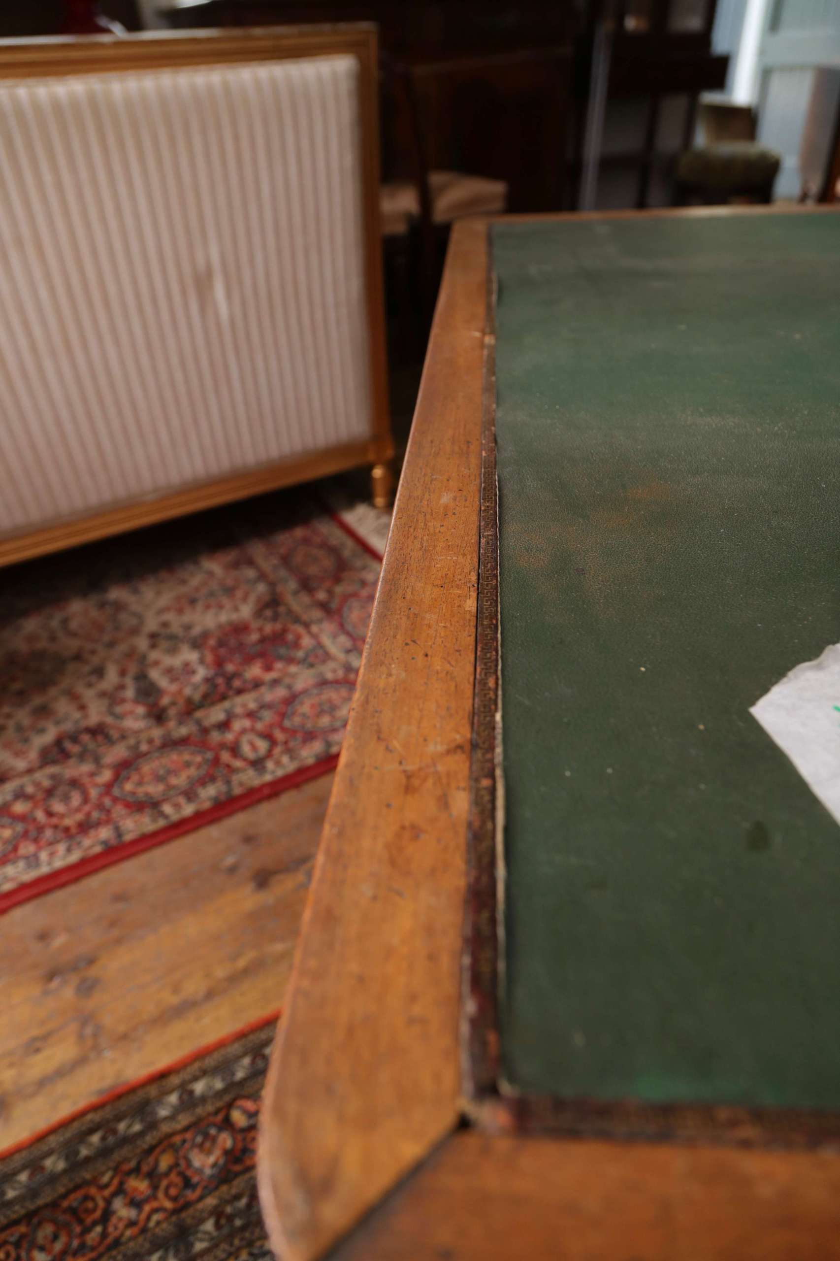 Home / French Antiques / Antique Tables, Desks and Vanity / Writing Desk with Green Leather Top Writing Desk with Green Leather Top Classic early 20th century French writing desk with original green leather top and brass drawer pulls. A timeless piece offering both charm and everyday functionality. Categories: Antique Tables, Desks and Vanity, French Antiques Product ID: 1397